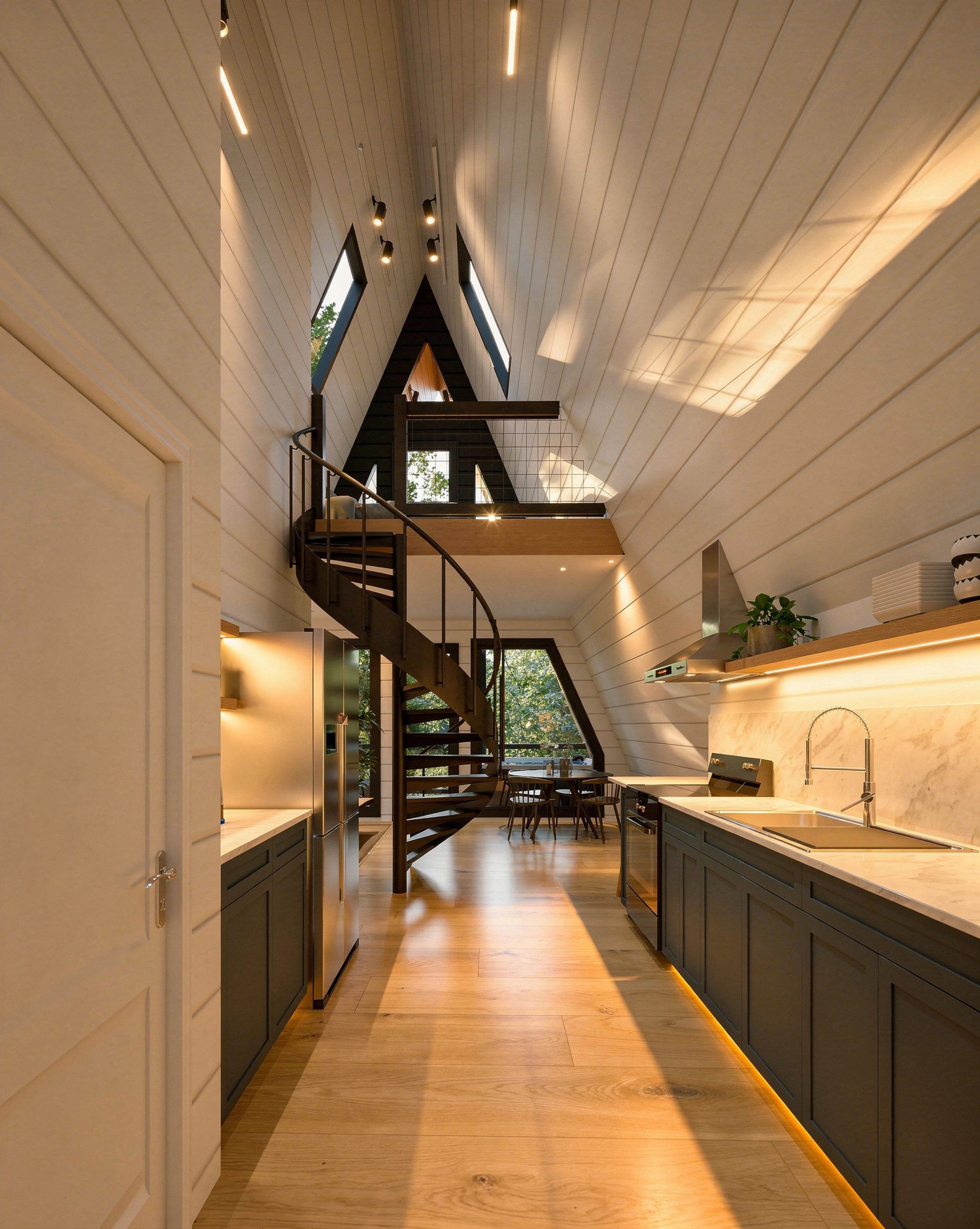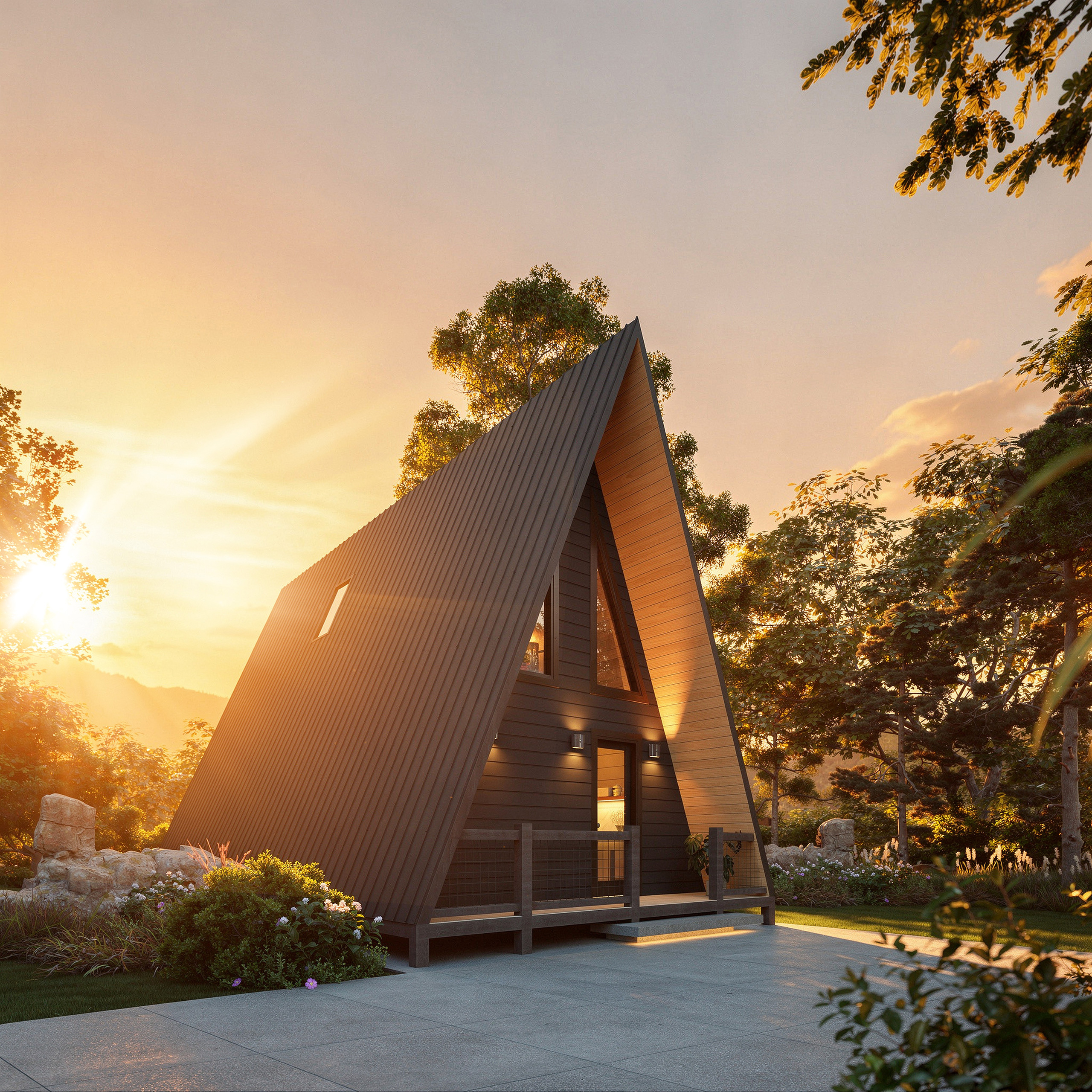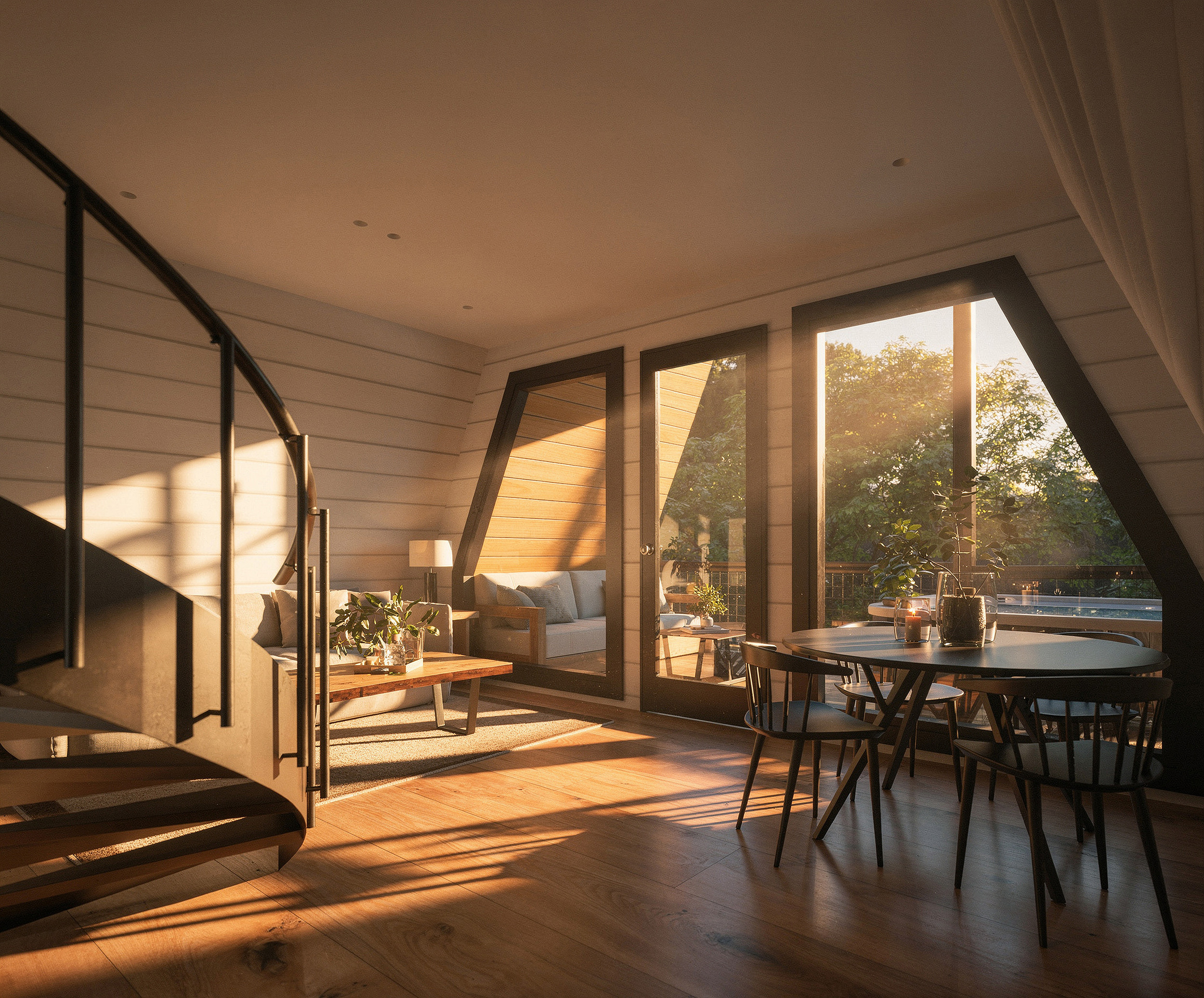 Elevated on piers, this “treehouse” version creates a striking modern cabin feel and works beautifully on sloped terrain. It also includes additional site work, reflected in the price. Watch the tour and browse the photos to experience the view from up high.